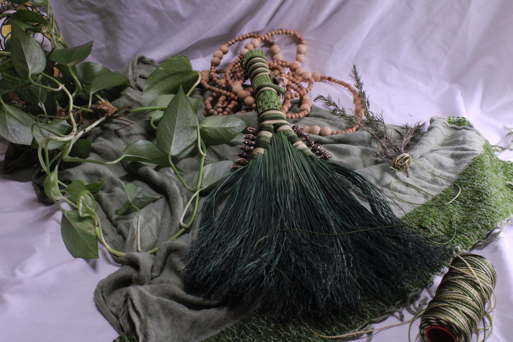 This broom evokes the energy of stealth, force, liberation & strategy, drawing on the Spirit of Uncle Monday. This broom arrives baptized in the waters of the Dismal Swamp, anointed with cypress oil, dusted with invisibility powder, waiting to ride hand in hand into battle.